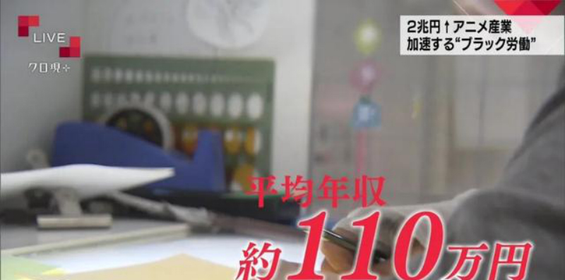 一般动画制作人员,平均年收入虽约为440万日元,但一个月通常只休5~4天。大学新人的平均年收入还要更低,大约为110万日元。