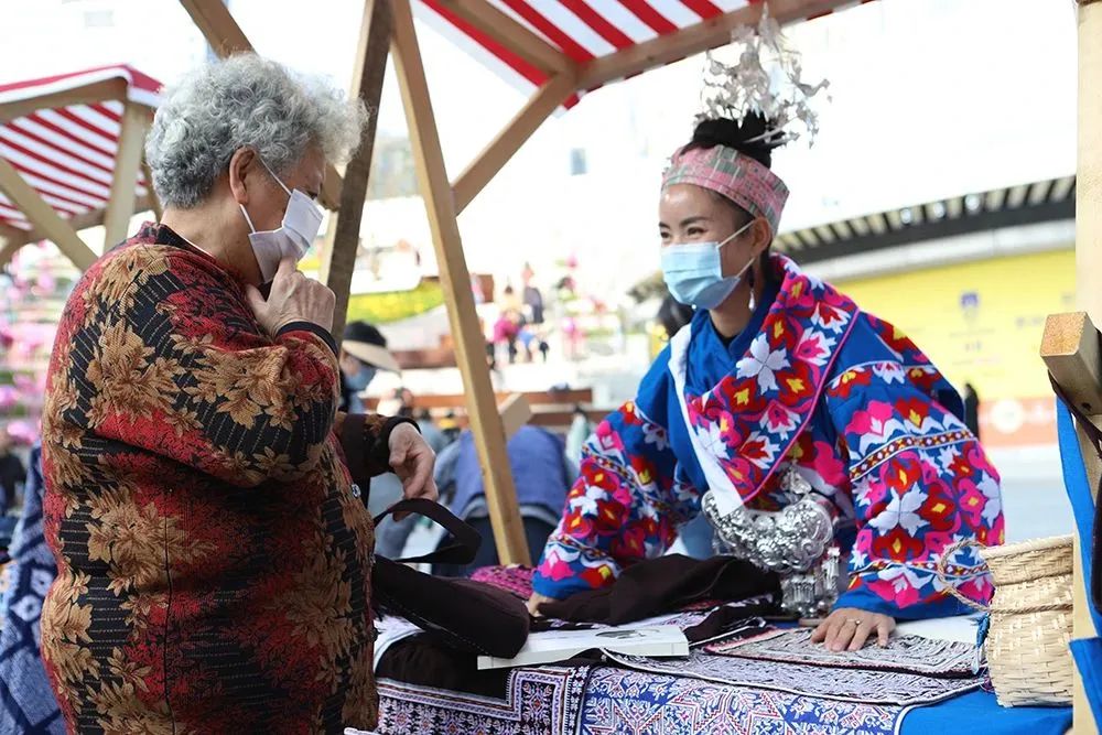 为引导、支持我市2022年文化人才(非遗类)进一步提高传承能力和技艺水平,展示独特风采和魅力,宣传推广非遗文创产品,20位贵阳市2022年文化人才(非遗类)亲临活动现场,带来各自设计和手作的苗绣、蜡染、雕刻、木雕等技艺精湛、成品精美的非遗文创产品。活动现场还通过LED屏幕播放文化人才(非遗类)的宣传视频,展示非遗项目内容,宣传我市非遗近年来的保护成果。群众或驻足观看文化工作者现场制作,或询问非遗项目历史来源,或与非遗文创产品拍照留念,或参与非遗项目的体验互动,或积极购买喜爱的非遗文创产品,营造了群众广泛参与非遗的良好氛围,提高了人民群众对非遗的认同感、参与感、获得感。下一步,贵阳市将继续促进非遗创造性转化,创新性发展,打造更多具备贵阳特色的优质非遗文创产品,实现贵阳非遗的产业化、品牌化发展,让广大群众更深入地了解非遗的魅力,让非遗真正做到见人见物见生活。