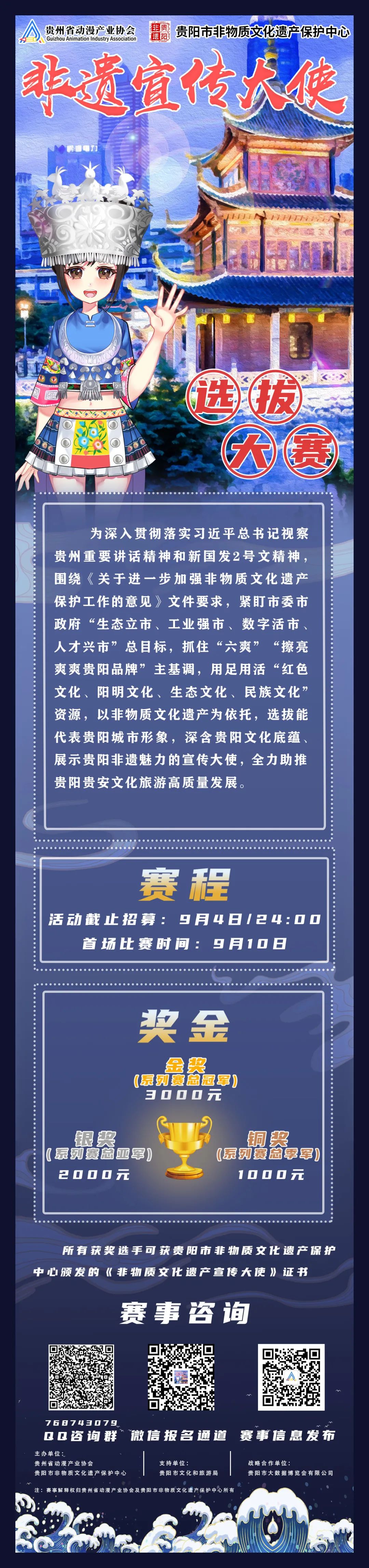 基于上述战略构想,贵州省动漫产业协会联合贵阳市文旅局非物质文化遗产保护中心共同开展“非物质文化遗产宣传大使”选拔工作。在尊重非物质文化遗产基本内涵的前提下,弘扬其当代价值。
