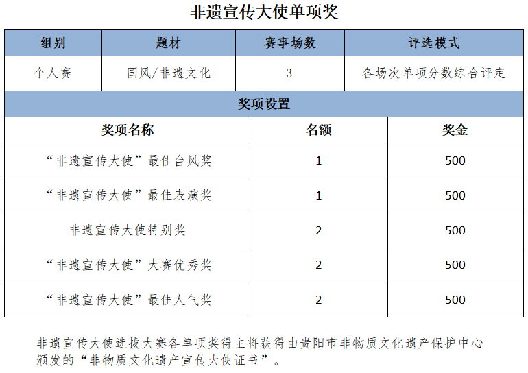 2.1. 首届“非遗宣传大使选拔大赛”奖项设置