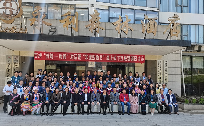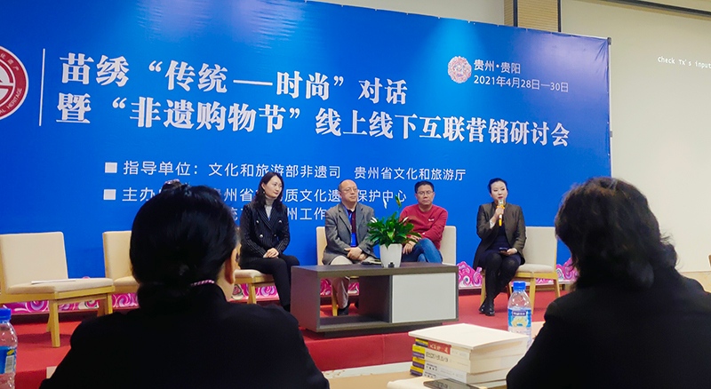 4月29日,苗绣“传统-时尚”对话暨“非遗购物节”线上线下互联营销研讨会在贵阳举行。会议分为三部分,分别围绕苗绣工艺和产业的传承与发展、“非遗购物节”借助互联网开展营销、互联网营销培训等主题展开。
