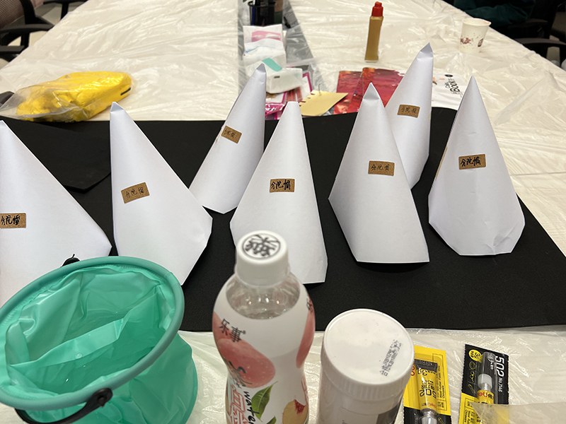 活动开始,一千零一动漫社为参加活动的爱好者们准备了美工刀、道具主体材料、道具装饰材料、画笔、颜料、胶水等,并一一分发给大家。动漫社社长耿礁为大家仔细讲解了道具制作的流程及细节,指导爱好者们进行道具的制作。